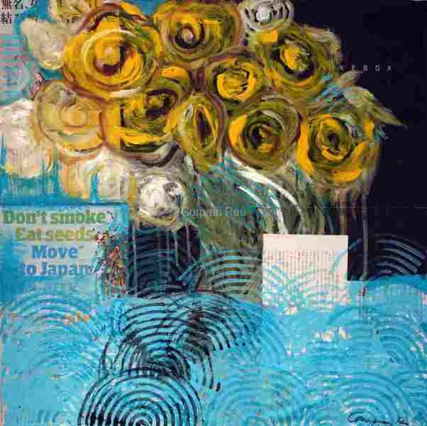 Don't Smoke, Eat Seeds, Move to Japan, Mixed media on canvas, 24in x 24in