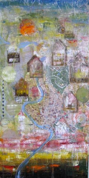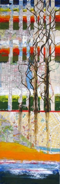 All roads lead to home, Mixed media on maple, 36in x 18in