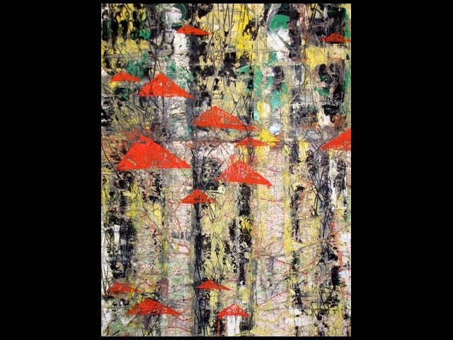 Where will I nest tonight?, Mixed media on maple, 34in x 24in