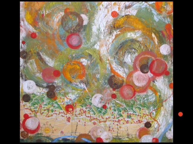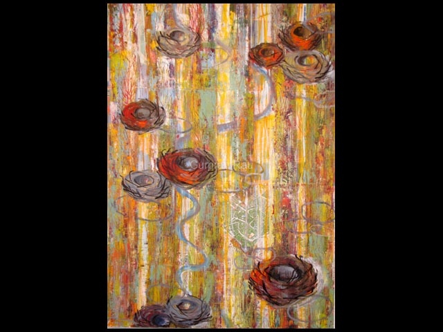 From the microcosm of cellular structures to the macrocosm of vast landscapes I am fascinated by the patterns and repetition found in nature – they mirror the mapping and coding of invisible information stored within us.The circular forms apparent in most works symbolize the oneness of humanity, of all that is complete and whole. A circle has no beginning and no end, it is infinite and endless. The intertwining of these abstract and organic forms becomes an important part of my process.